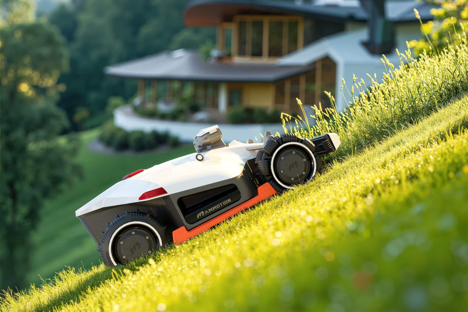 The AI algorithm in the vision system can distinguish whether an object ahead is tall, thick grass to be mowed or an obstacle to avoid, such as children or animals.